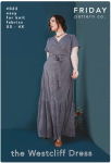 The Westcliff Dress is an easy to sew dress for knit fabrics. It features a wrap front with full coverage and a neckline that won’t gape! There is an optional lower tier that makes this dress a maxi. The pattern also includes a tutorial on how to turn this dress into a cute cropped top.
